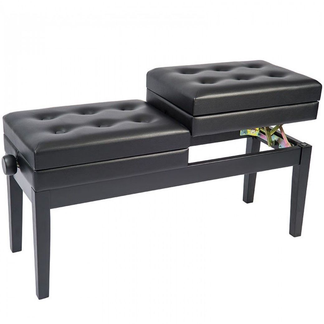 Artist PB-026MBL Банкетка двойная деревянная с регулировкой высоты, нотное отделение, цвет черный матовый, кожзам, пуговицы