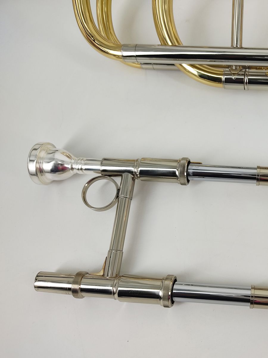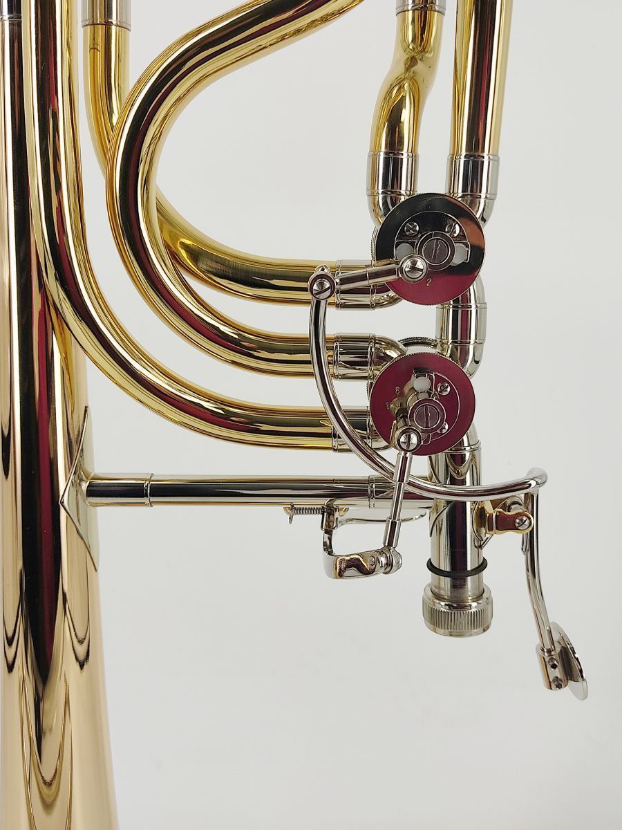 Artist SL-831 Тромбон бас Bb/F/Gb/D, раструб 241 мм, мензура 14.2 мм, настроечный крон мельхиор, кулиса мельхиор, покрытие золотой лак, облегченный кейс в комплекте