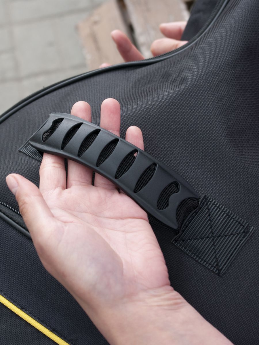 BaggZ AB-41-2 – это качественный чехол для акустической гитары 41". Главное назначение AB-41-2 – оберегать инструмент от внешних воздействий окружающей среды, которые негативно сказываются как на внешнем виде гитары, так и на ее звучании. BaggZ – это качественные эквалайзеры, прочные чехлы и стильные ремни для гитар. Продукция фирмы изготавливается на крупном китайском заводе. Все товары проходят поэтапный контроль качества, маркируются и успешно поставляются в различные страны мира. Продукция фирмы BaggZ – прекрасное сочетание высокого качества и привлекательной цены. Особенности модели: – плотный синтетический материал – защитный слой – 5 мм, плотность – 600D – вместительный наружный карман для аксессуаров – дополнительный карман на уровне грифа для медиаторов – два регулируемых ремня со смягчающими подкладками – удобная ручка на лицевой стороне BaggZ AB-41-2 – надежная защита вашего инструмента от пыли, легких повреждений и тепловых воздействий.