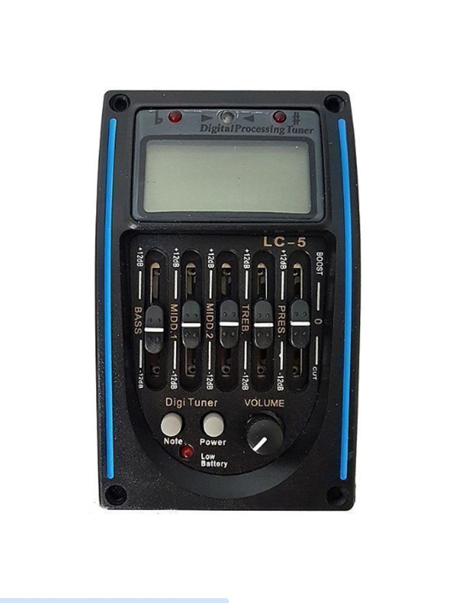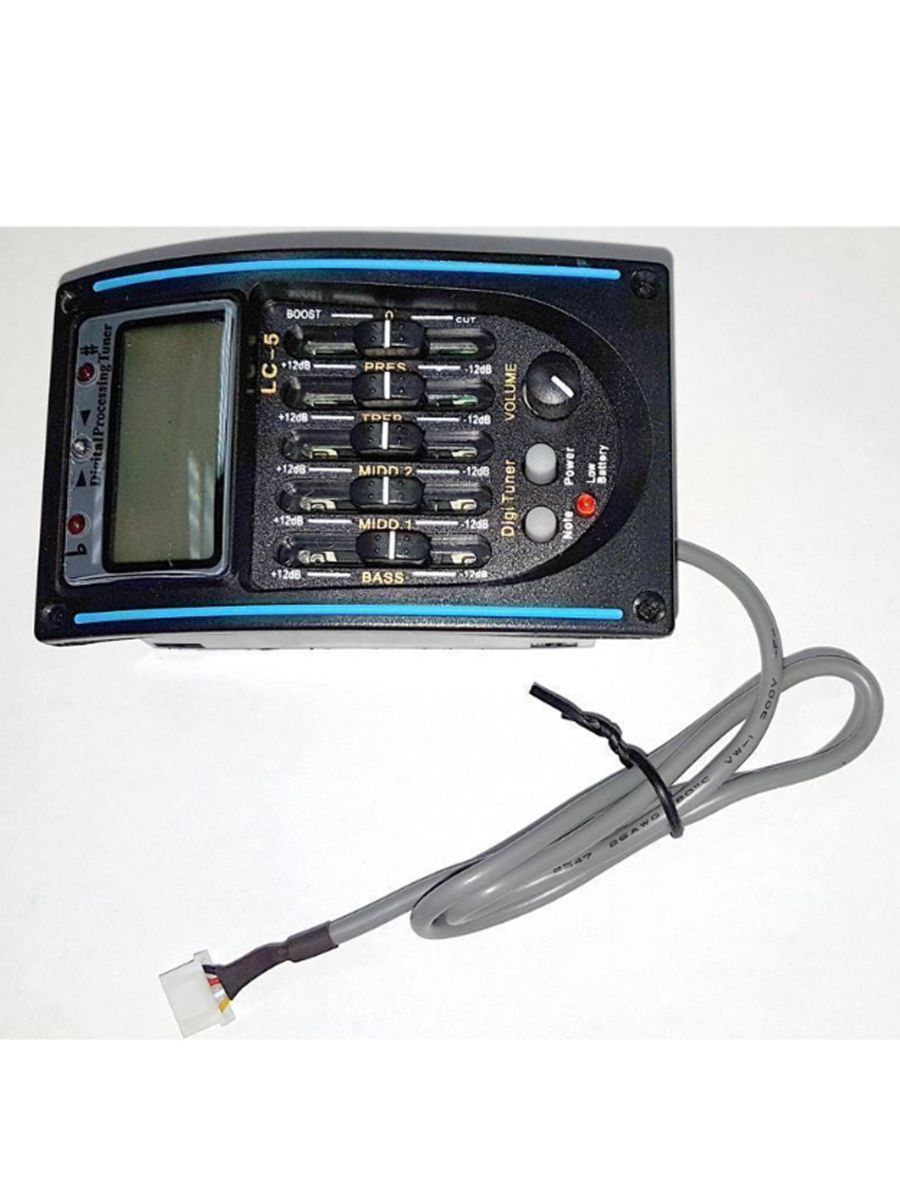 BaggZ LC-5 – отличный звукосниматель с пятиполосным эквалайзером, тюнером и батареей. Модель подходит для классических и акустических гитар. Особенности модели: – 5 полос эквализации – регулировка уровня громкости, низких, средних и высоких частот, яркости звучания – функция реверса фазы для подавления обратной связи – соединительные провода и батарея в комплекте – размер 57х95х44 мм Модель BaggZ LC-5 очень легко вмонтировать в корпус инструмента. Пять полос эквализации помогут быстро преобразить звук и подавить обратную связь. Встроенный тюнер с большим ЖК-дисплеем позволит вам без труда настроить инструмент. Эквалайзер BaggZ LC-5 позволит вам быстро настроить гитару и сделать ее звучание мощным, объемным и качественным.