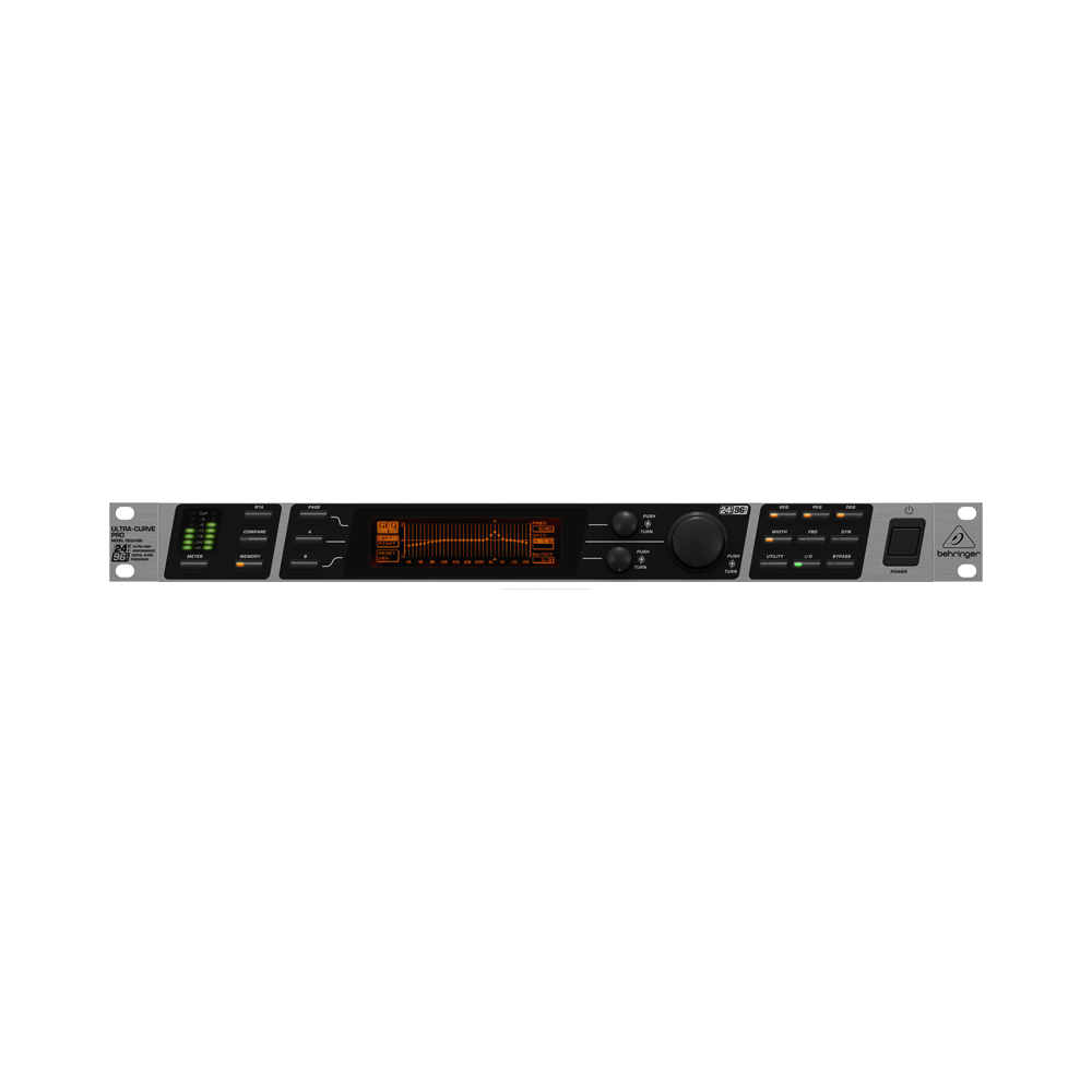 Высокоточный цифровой процессор 24-Бит/96 кГц. Чрезвычайно качественое исполнение данного эквалайзера делает его идеальным для мастеринга аудиофайлов. Существет 4 одновременно выбираемых модуля EQ (31-полосный графический эквалайзер, 10-полосный параметрический эквалайзер, Feedback Destroyer и динамический EQ на канал). Следующий важный момент - дополнительный 61-полосный RTA, который может бежать одновременно с секцией EQ. DEQ2496 демонстрирует высококачественные A/D и D/A конвертеры AKM ® 24-бит/96 кГц и два быстродействующих цифровых сигнальных процессора SHARC® 32/40-бит для идеального звукового решения, динамический диапазон 113 Дб. Также есть мультифункциональные регуляторы уровня сигнала (peak/RMS, VU и SPL с dBA/dBC нагрузкой через микрофонный вход RTA), плюс 64 Мб памяти для полного комплекта установок или индивидуального конфигурирования.