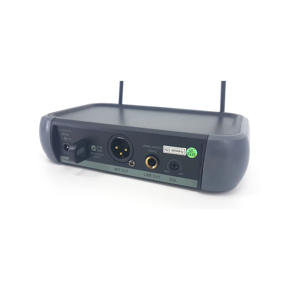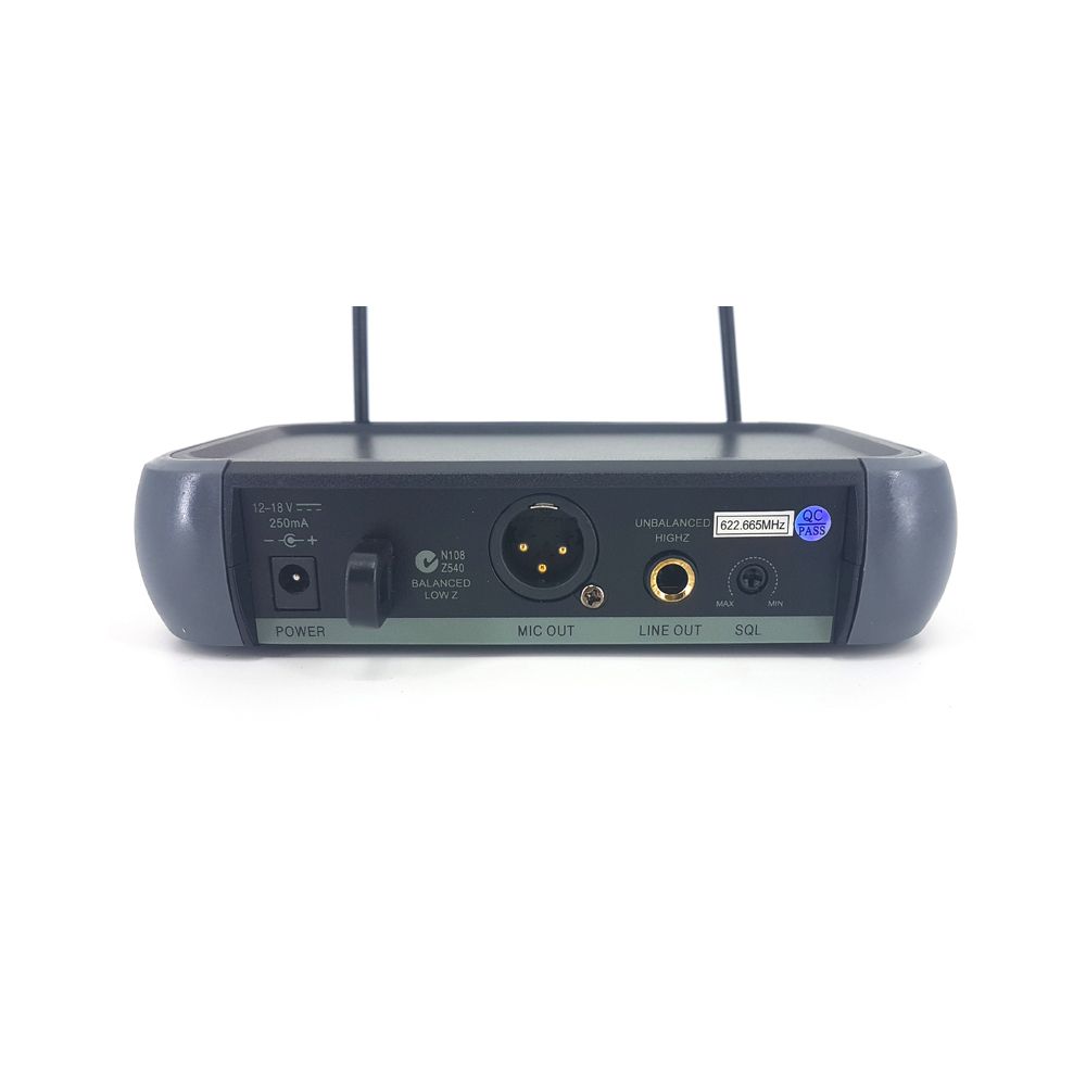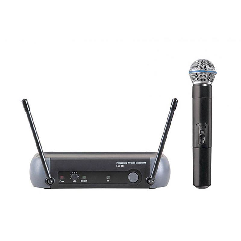 BG EU-45B представляет собой качественную вокальную радиосистему, которая работает в широком звуковом диапазоне. Модель можно использовать как на открытых площадках, так и на закрытых мероприятиях. Комплектация: 1. Приемник 2. Ручной микрофон Приемник: – индикатор переключателя ON/OFF – регулятор громкости – RF-индикатор – переключатель ON/OFF – антенна приемника – разъем кабеля питания – балансный выходной разъем – выходной аудиоразъем – регулятор шумоподавителя Микрофон: – капсюль – индикатор низкого заряда – переключатель питания – отсек для элементов питания