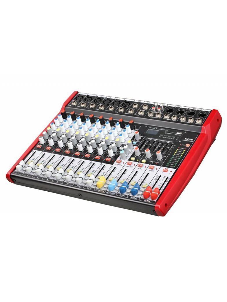 BG M208 Пульт микшерный, 6 моно, 2 стерео, USB/SD MP3 плеер, процессор эффектов, 7 полосный эквалайзер, 2 подгруппы, фантомное питание