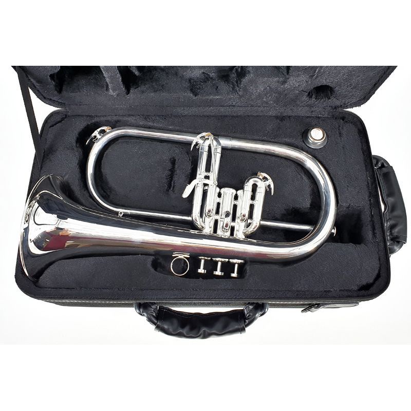 Brasspire BPFG-850S представляет собой флюгельгорн в строе Bb, который сочетает в себе высокое качество сборки, профессиональное звучание и привлекательную стоимость. Раструб инструмента выполнен из томпака, который придает звучанию особую мягкость и теплоту. Продуманное расположение помп и крон обеспечивает необходимое сопротивление для получения любого уровня громкости. Серебряная отделка корпуса предотвращает коррозию и продлевает время службы. Модель поставляется в комплетке с прочным футляром, который надежно защищает инструмент от механических повреждений. Флюгельгорн Brasspire BPFG-850S станет прекрасным варинатом для джазменов.