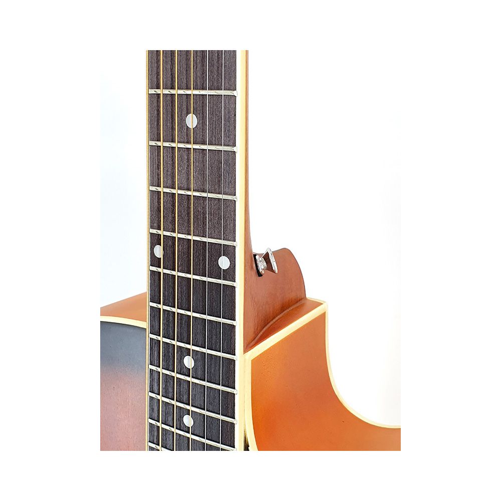 HS-4040CE MAS – качественная и доступная по цене электроакустическая гитара с вырезом. Верхняя дека инструмента изготовлена из сапеле, древесной породы по свойствам схожим с красным деревом, благодаря чему звук приобретает глубину и мягкость. Нижняя дека из липы отвечает за яркость основного тона и средних частот. Гриф из махагони снабжен прочной палисандровой накладкой. Элегантный внешний вид дополняет красивая расцветка верхней деки. Натуральное лаковое покрытие корпуса обеспечивает привлекательный внешний вид и положительно влияет на звуковые характеристики гитары. Caravan – это недорогие акустические и электроакустические гитары с качественным звучанием. За все время существования бренд Caravan заработал себе безупречную репутацию и прочно укрепился в нише акустических гитар. Caravan HS-4040CE MAS – хороший выбор для обучения музыке и домашнего музицирования.