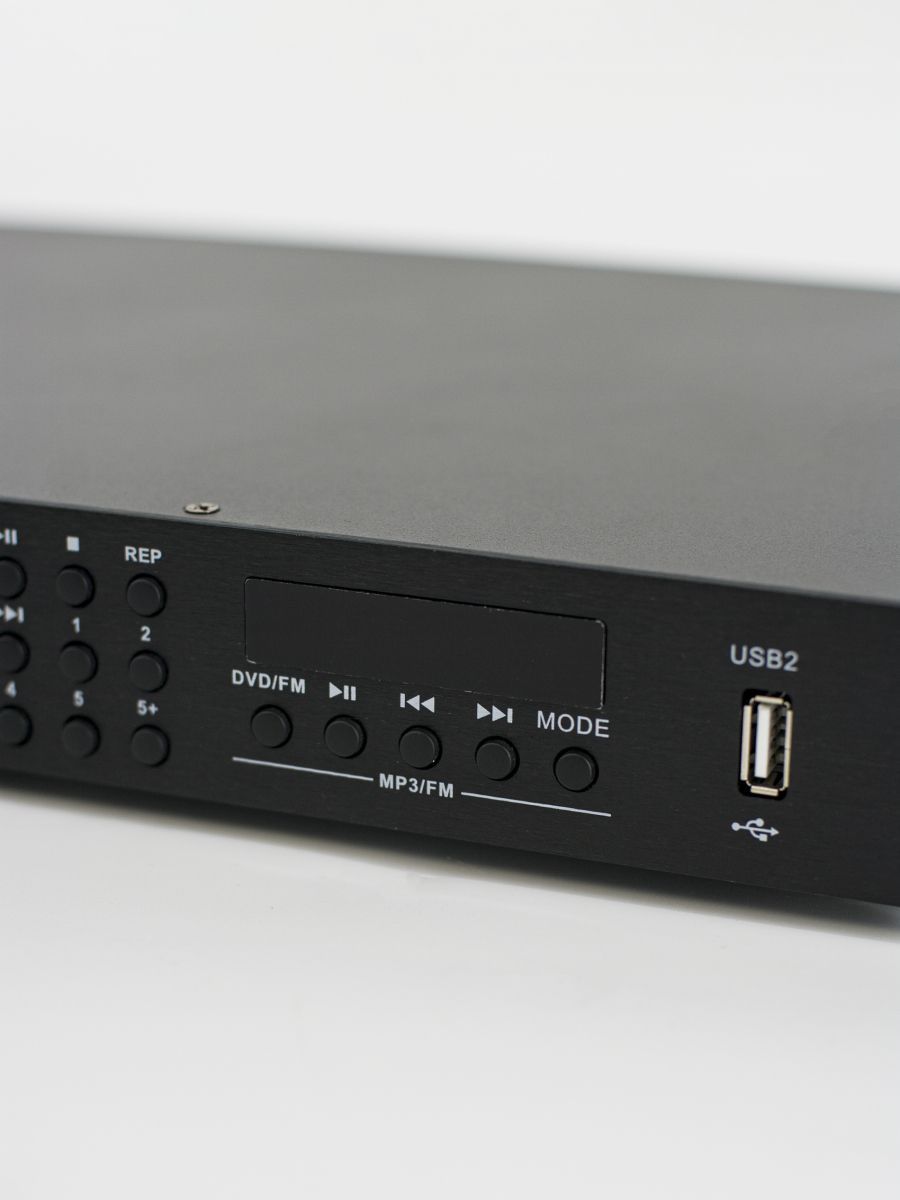 CMX Audio DMT200 - это аудиоплеер с DVD/CD/USB/FM-приемником, монтируемый в 19-дюймовую стойку, для систем оповещения и профессиональных звуковых систем. - CD/DVD-плеер для монтажа в 19-дюймовую рэковую стойку с двумя USB-портами, FM- радио и Bluetooth - Аудиоплеер для систем оповещения и воспроизведения фоновой музыки - Поддержка различных форматов CD/MP3/MP4/VCD/DVD/FM и Bluetooth-радио - Беспроводной ИК-пульт для выбора источника и регулировки громкости - Два отдельных линейных стерео выхода для DVD/USB1 и FM-радио USB2 - Стереовыход DVD и коаксиальный выход CMX Audio DMT200 — это надёжное решение для создания профессиональных аудиосистем, идеально подходящее для использования в ресторанах, торговых центрах, отелях и других общественных местах.