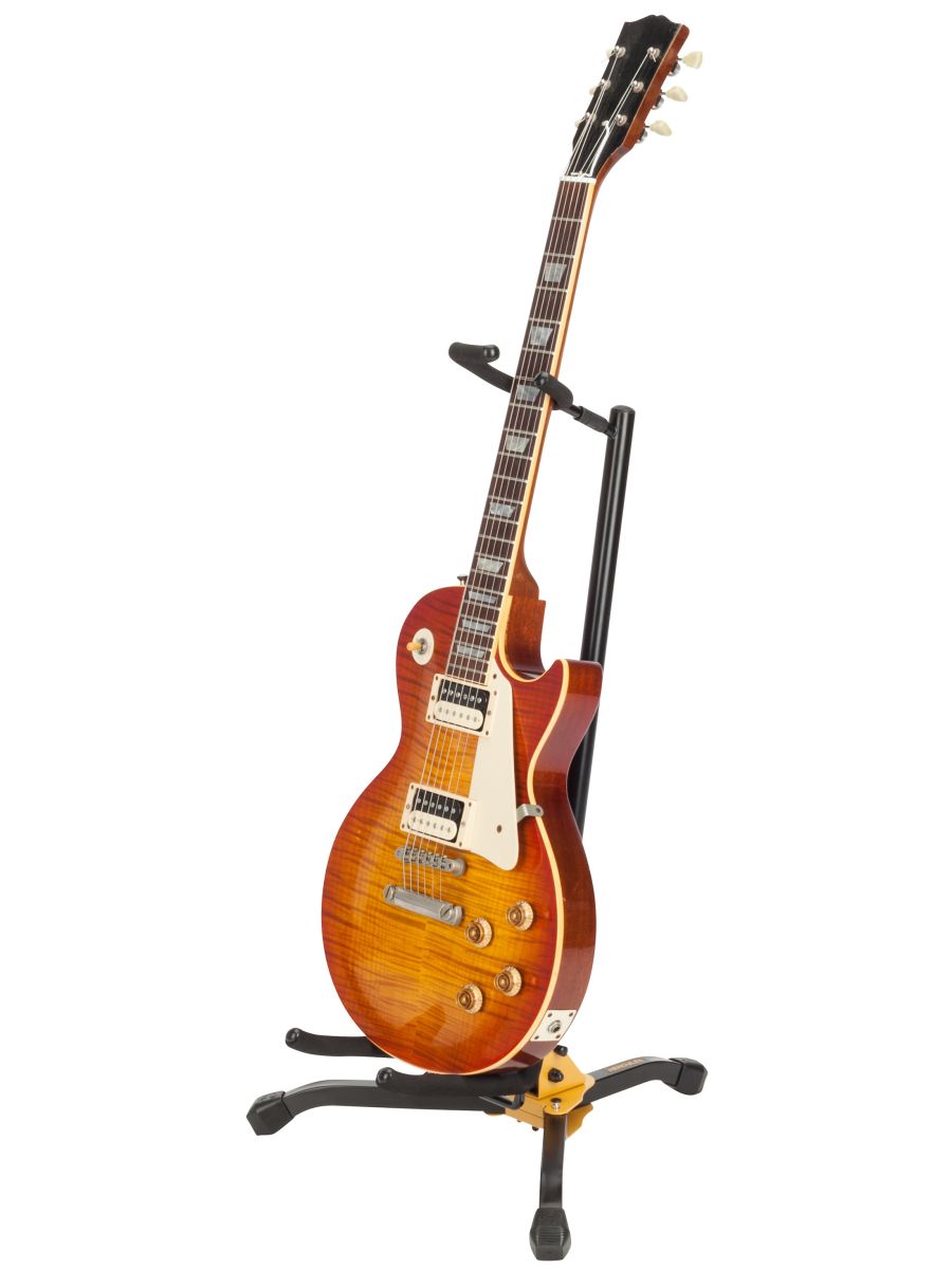 Hercules GS405B - универсальная напольная стойка для гитары. Имеет прочную металлическую конструкцию с SFF (поролон) покрытием контактных частей для предотвращения повреждения корпуса гитары. Верхний хомут имеет безопасную систему задержания, которая сохранит вашу гитару на позиции. Установка стойки производится при помощи трех блокировочных кнопок. Вся конструкция стойки легко складывается и упаковывается. Hercules GS405B - это оптимальное решение для тех, кто ищет надёжную и удобную стойку для гитары. Сочетание прочности, безопасности и удобства использования делает эту модель отличным выбором для музыкантов любого уровня.