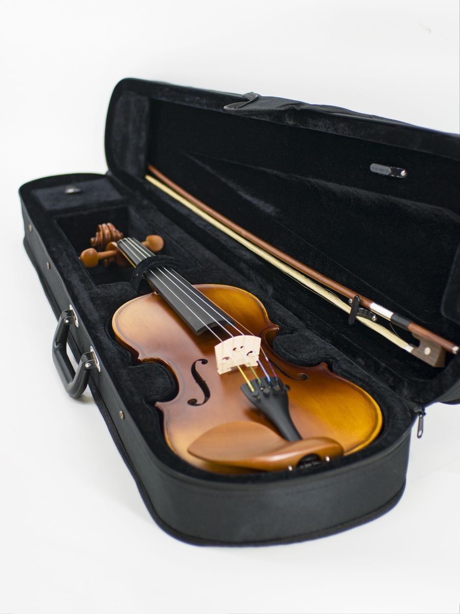 HMI HV-200HF 4/4 Скрипка Student 4/4, в кейсе, смычок, канифоль, верхняя дека - массив ели, нижняя дека, обечайки - массив клена, гриф - черное дерево, матовая