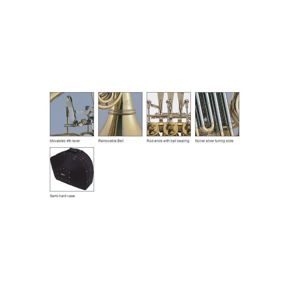 J. Michael FH-850 – качественная двойная валторна F/Bb со съемным раструбом.   Деревянные и медные духовые инструменты J.Michael завоевали популярность и уважение у покупателей благодаря высокому качеству звучания, великолепному классическому дизайну и доступной цене. Все модели J.Michael собраны по японской технологии с учетом опыта ведущих производителей духовых музыкальных инструментов и музыкантов, что определяет их неизменное высокое качество. Корпус инструмента изготовлен из желтой меди, кроны для подстройки – из никеля. Валторна поставляется в комплекте с надежным полужестким кейсом. Доступная по цене валторна J. Michael FH-850 станет прекрасным вариантом не только для начинающих музыкантов, но и для опытных исполнителей.