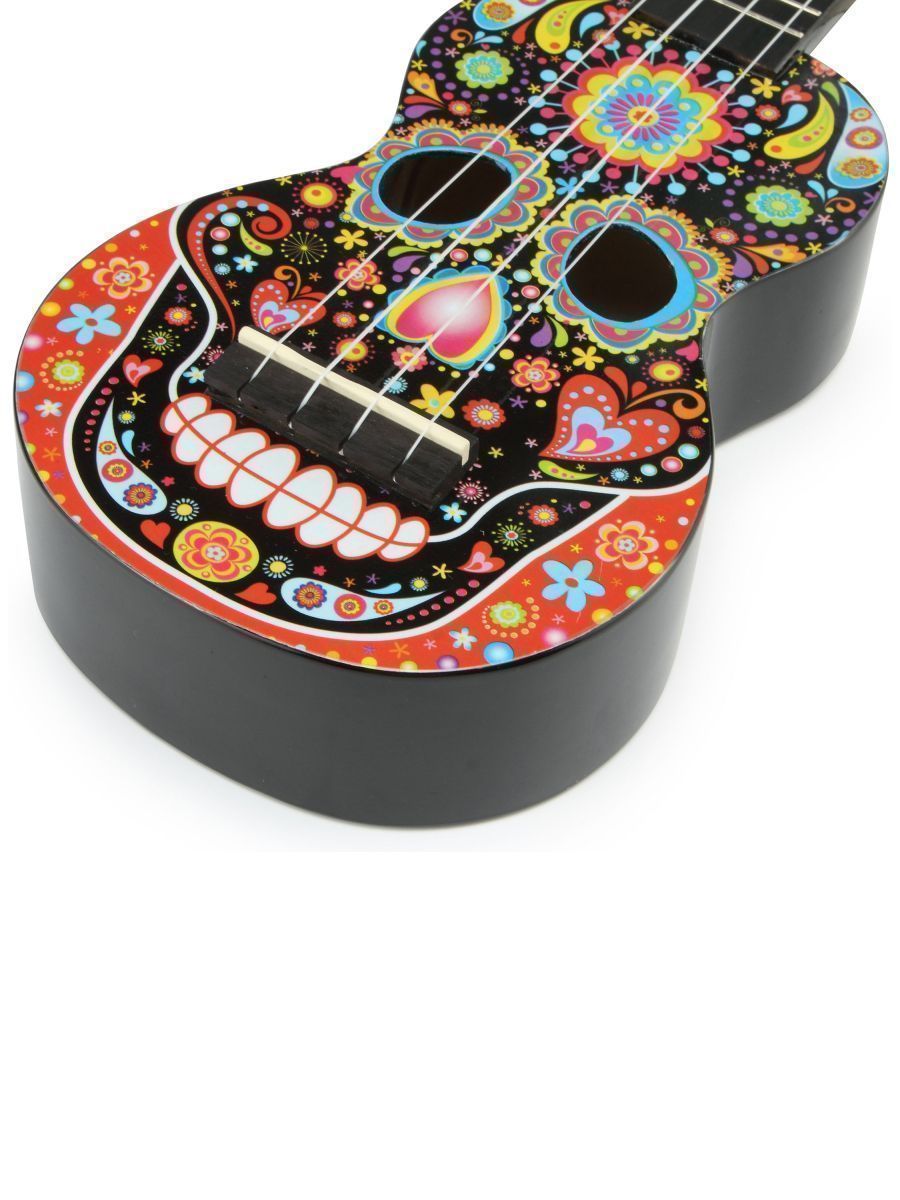 Mahalo MA1SKBK Укулеле сопрано с чехлом, корпус - липа, гриф - габон, накладка на гриф махагони, струны Aquila Super Nylgut, цвет - Black, лакированная, рисунок - череп, серия Art Soprano