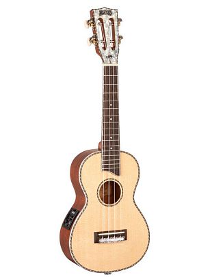 Mahalo MP2E Укулеле концертная электроакустическая с чехлом, верхняя дека цельная ель, нижняя дека и гриф - махагони, струны Aquila Super Nylgut, преамп 9V MEQ2 с LCD тюнером, цвет Natural, инкрустрация перламутром, матовая, серия Pearl