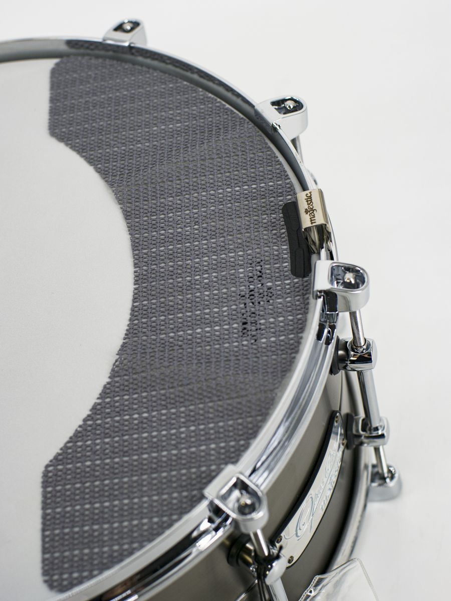 Размер: 14” x 6,5” Корпус: латунь (1,2 мм) Фурнитура корпуса: хромированная Кромка: внутренний острый угол 45° (с обеих сторон) Отделка: матовый античный никель Обод: однофланцевый (латунь) Верхний пластик: Remo Diplomat с покрытием Резонансный пластик: Remo Diplomat Hazy (сторона малого барабана) Сетчатый фильтр: OP-01 Подструнник: ST16-1403 без покрытия из нержавеющей стали (4) 0,6 мм и (10) 0,8 мм и (2) 1,0 мм Модификатор частоты: PFM1465