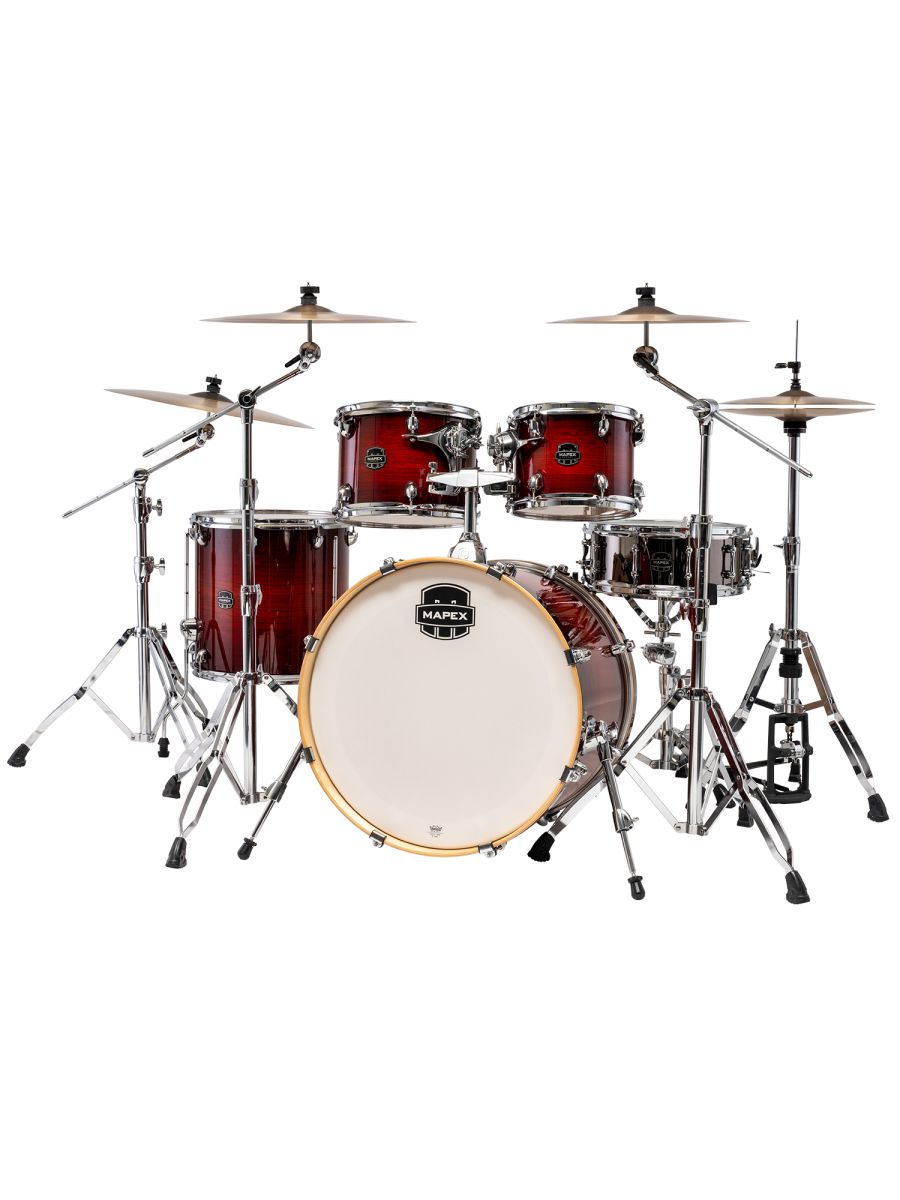 Серия: Armory Корпус: клен/береза, 8 слоев, толщина 7,55 мм Система крепления томов : SONIClear™ Пластики: Remo UC Double-ply Clear Batter, UX Clear Bottom для подвесных томов Remo UT Пластики: Clear Batter head(with dampeningring), UC Coated Reso Head для бас-барабана Ножки напольного тома: SONIClear™ Цвет: Red Onyx Burst * Набор стоек, педаль и стул не включены в комплект. ** Для комплектации ударной установки рекомендуем использовать хардваер Mapex 800 серии или комплект стоек с педалью Mapex HP8005