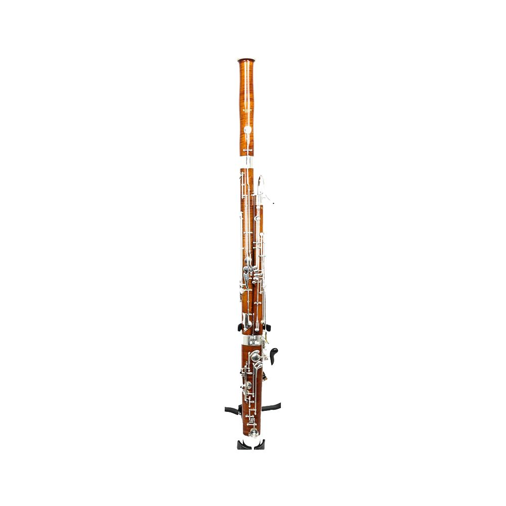 Moosmann 150 E – это высококачественный оркестровый фагот от всемирно известной компании. Bernd Moosmann является традиционным производителем деревянных духовых инструментов высочайшего качества. Фаготы компании звучат во многих известных оркестрах мира. Техническое качество, высококачественные материалы, использование запатентованных разработок – все это делает фаготы Bernd Moosmann по-настоящему превосходными! Особенности модели: – дублирующий клапан Bb для 3-го пальца правой руки – двойной клапан C большой октавы – установлен клапан верхнего E – перемычка от октавного клапана A к «бесшумному» клапану (механизм «Whisper key») – все пальцевые отверстия с эбонитовыми вставками, выходящими внутрь канала – 9 роллеров. В отверстиях нот G, B установлены металлические диски для плотного прилегания подушек Moosmann 150 E – это непревзойденное качество и неповторимое звучание!
