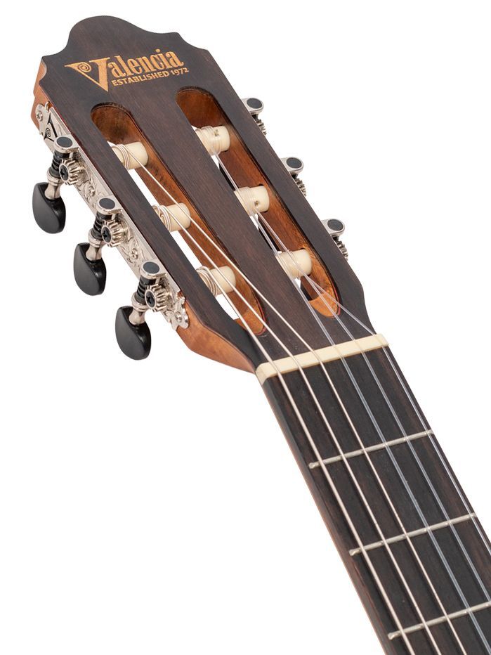 Valencia VC704 представляет собой профессиональную классическую гитару, созданную для истинных ценителей качественного звучания. Верхняя дека из цельной ситхинской ели с инновационной системой крепления ToneFlow обеспечивает этой гитаре выдающийся диапазон, который реагирует на каждое ваше прикосновение с артикуляцией и детализацией. Нижняя дека и обечайки из высококачественного красного дерева усиливают богатство низких и средних частот. Гриф из высококачественного красного дерева и накладка на гриф из черного дерева Amara обеспечивают изысканное игровое ощущение. Другие особенности, такие как шпон экзотических пород дерева, инкрустированная мозаичная розетка из натурального дерева и индивидуально декорированные колки, делают эту классическую гитару превосходящей ожидания по внешнему виду, звучанию и ощущениям. Valencia VC704 прекрасно подойдёт как для ежедневных занятий, так и для выступлений на сцене.